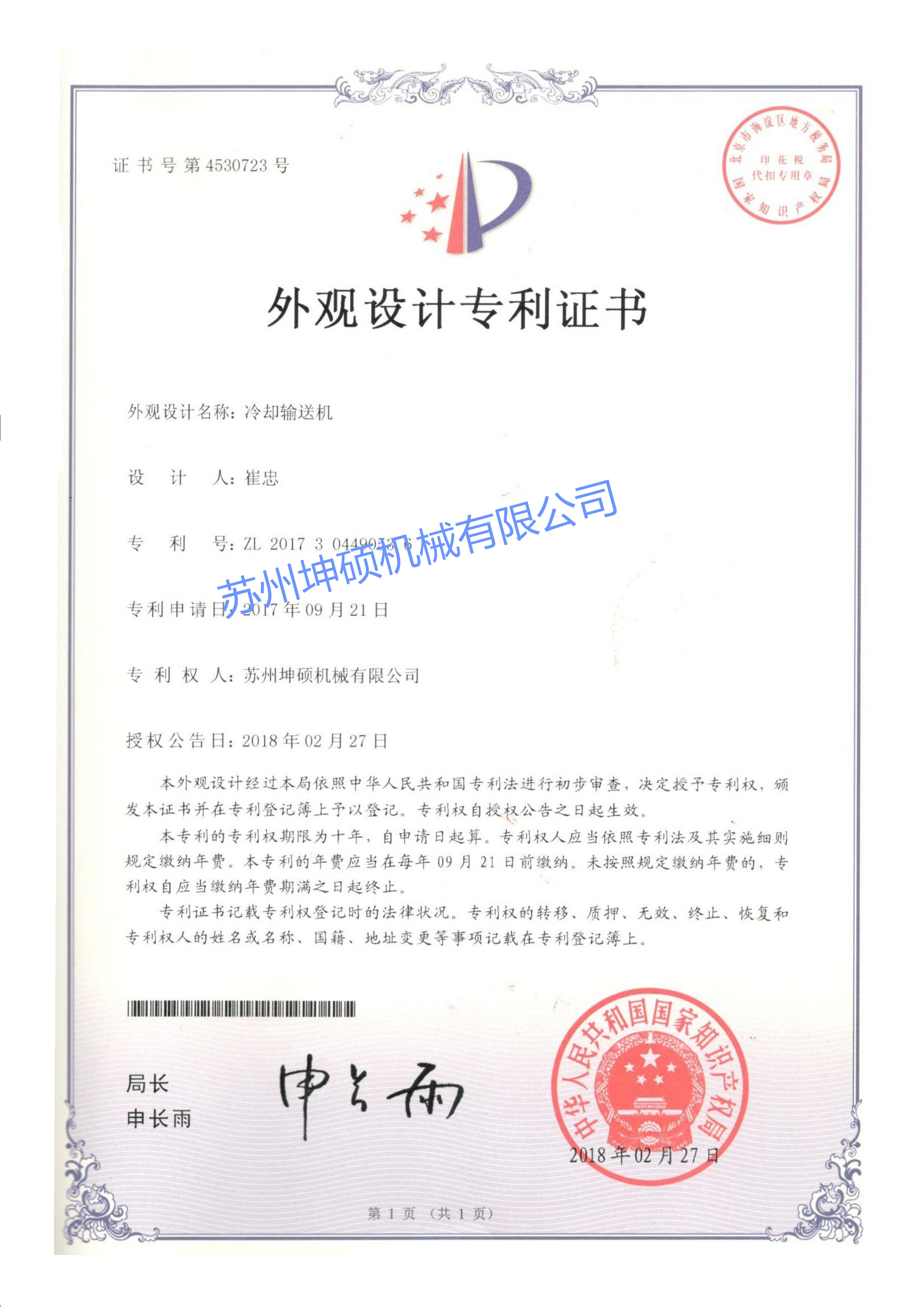 水冷式冷卻輸送機(jī)CE證書(shū)