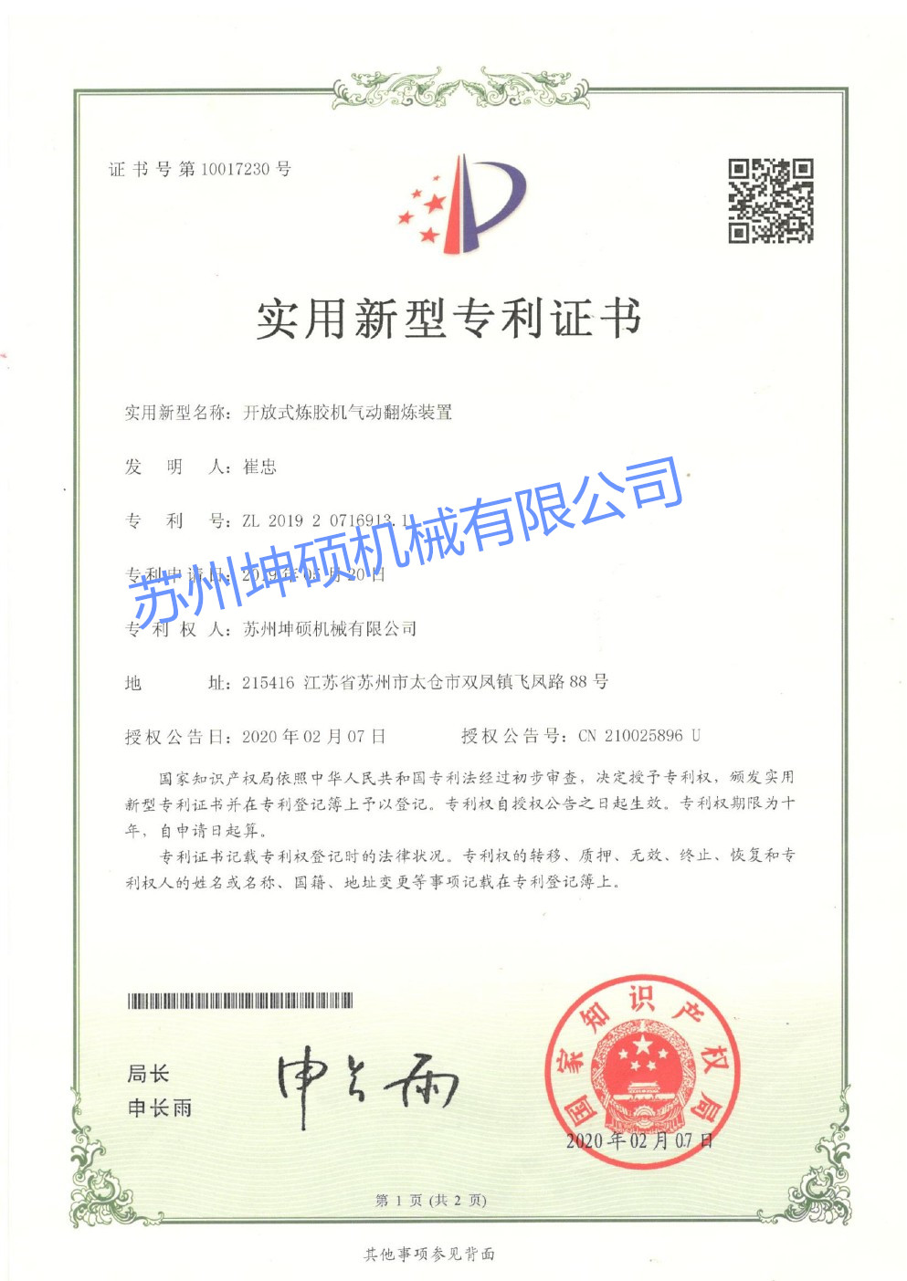 開(kāi)煉機(jī)氣動(dòng)翻膠裝置實(shí)用新型專利