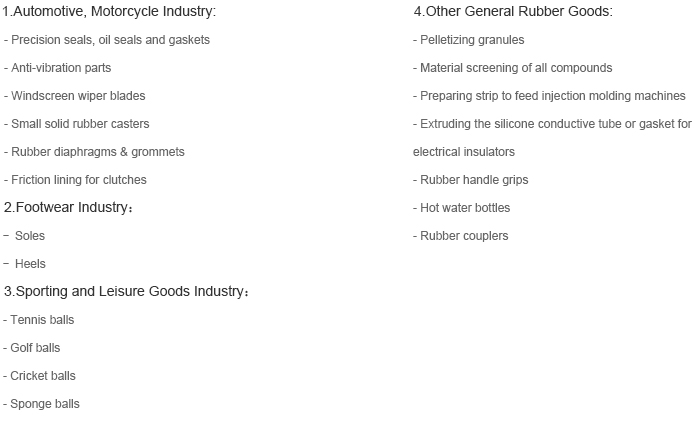 It can process a wide range of all rubber material including silicone, Natural rubber, NBR and FKM compound etc. It is able to extrude rubber blanks of circular, rectangle, strip and odd shapes. It is especially suitable to produce sealing, oil seal, tire valves, bottle stoppers, tennis balls, shoe soles and friction lining, etc. It integrates a variety of different functions such as vacuuming, filtrating, extruding, cutting, weighing, counting, etc.