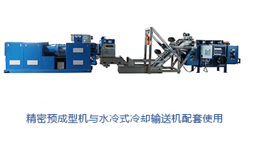 水冷式冷卻輸送機是專為解決膠坯粘連、變形而設計的預成型機配套輔機。