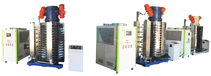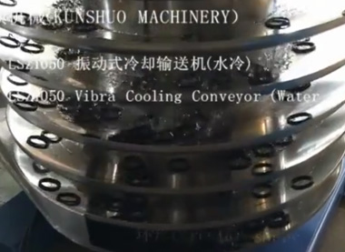 振動式冷卻輸送機是專為解決膠坯粘連、變形、冷卻而設計的預成型機配套輔機,該機占地面積小,與膠料接觸部位均采用不銹鋼材料,防止膠料污染。膠坯通過振動方式行進,有效防止膠料粘連、變形。標準冷卻距離長為35米,最長達50米??赏ㄟ^風冷或噴淋強化冷卻效果,重量小的坯料可采用封閉式風冷,重量較大或熱量較大的坯料,還可以通過外接水箱進行循環(huán)水噴淋冷卻,對FKM、NBR、CR、EPDM、造粒、軸承密封件、油封、O型圈等坯料的冷卻效果尤為突出.